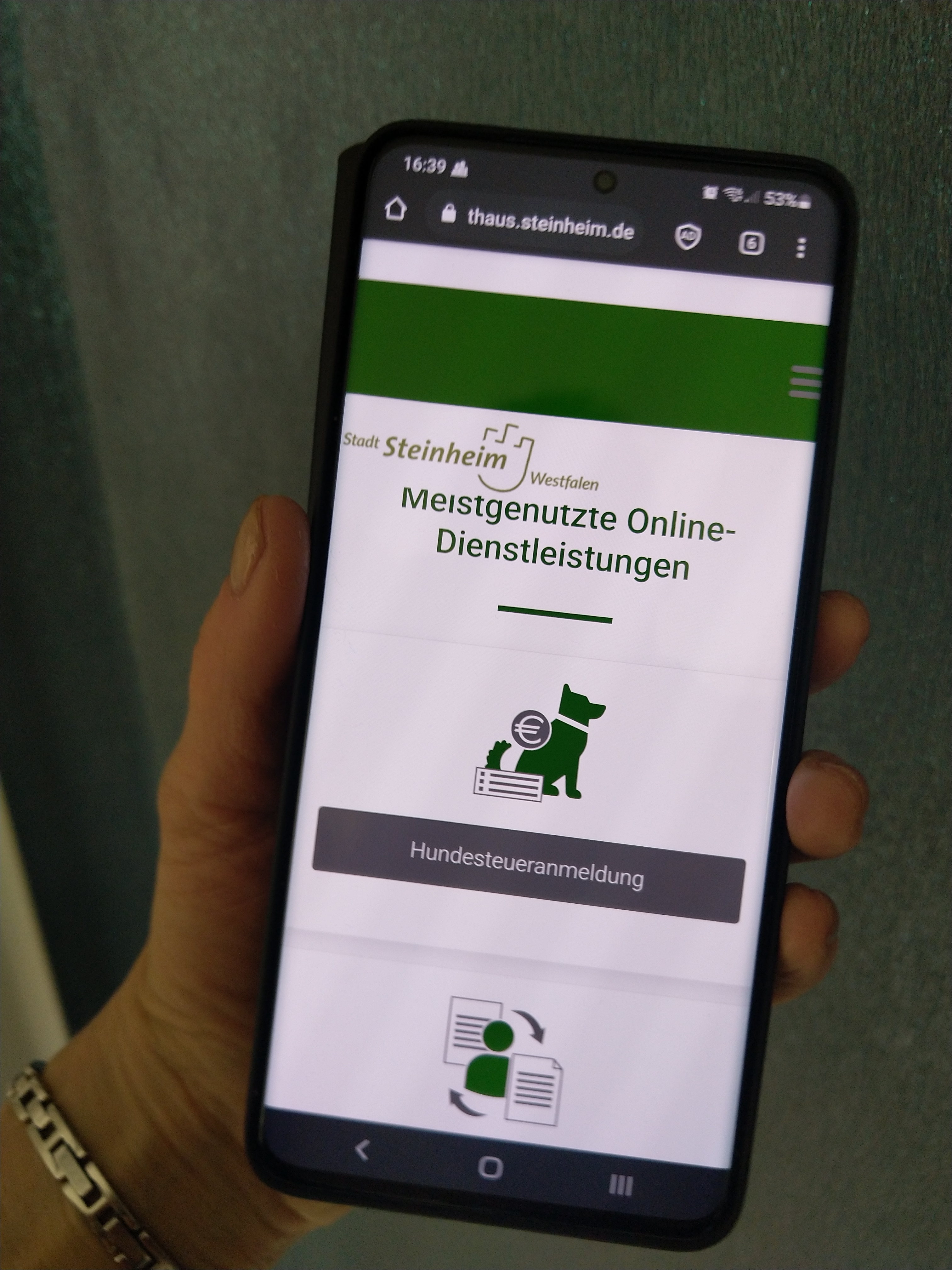 Die Stadt Steinheim kann bereits diverse Online- Dienstleistungen seit März 2021 anbieten. Unter https://openrathaus.steinheim.de haben die Bewohner bislang die Möglichkeit, z.B.: Hundesteueranmeldung, Ausstellung eines Familienpasses oder Fundsachen zu bearbeiten.